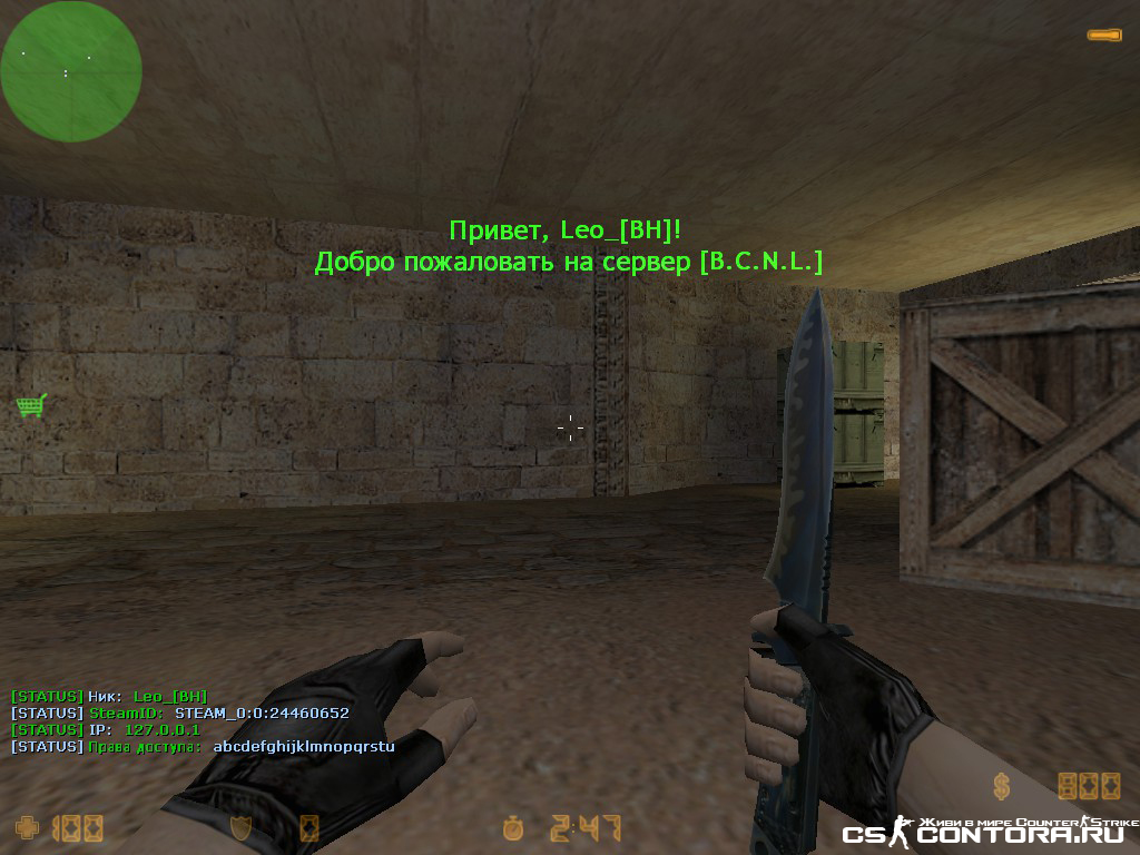 Status Me - простой плагин позволяющий узнать свой ip адрес , steamid и права доступа на сервере , все это красиво оформлено в цветном чате.
